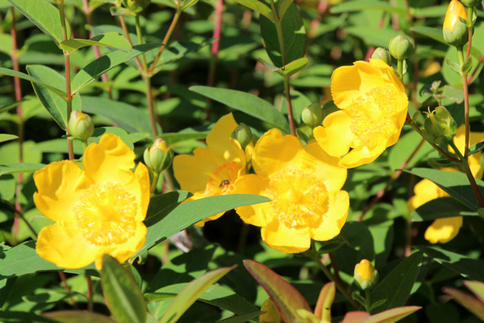 - 梅に似た黄金色の花を咲かせるキンシバイ(金糸梅、オトギリソウ科)