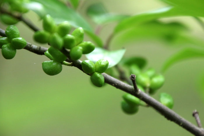 山地の沢沿いなど、やや湿った場所に生える落葉低木。クサギのように臭気がある。葉の付き方がユニークで、右右、左左・・・と2枚づつ交互につくのが特徴。キハダと同じく、葉をちぎるとミカン科特有の香りがする。葉を煎じた汁は殺虫効果がある。カラスアゲハは、この葉を独占的に食べるという。