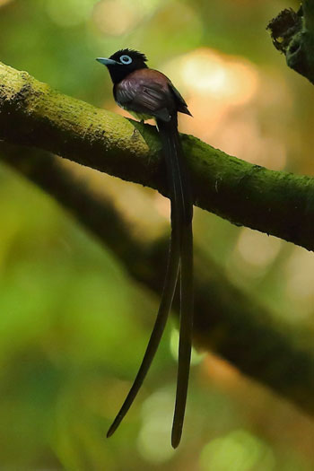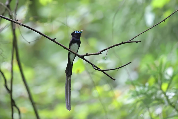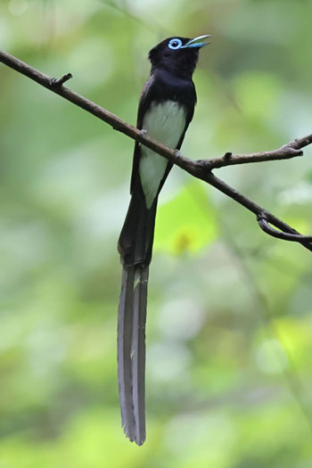 - 長い尾とコバルトブルーのアイリング・サンコウチョウ(スズメ目カササギヒタキ科)