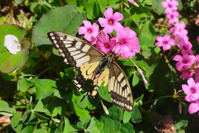 - 花粉が出るが結実しない・・・ムラサキカタバミと違って花粉は出るのに、なぜ結実しないのか?芋だけで安定した繁殖ができるので、虫媒花の戦略を進化の途中で変更したのだろうか?