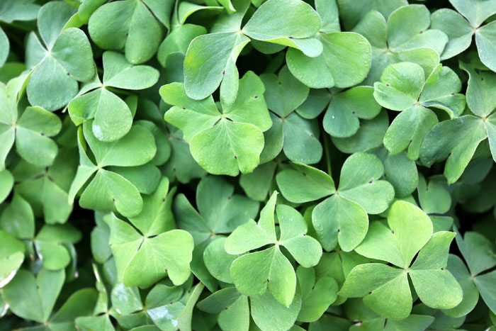 - 葉・・・全て根生葉で、長い柄の先に3出複葉をつける。小葉はハート形で葉の裏には短毛が生えている。