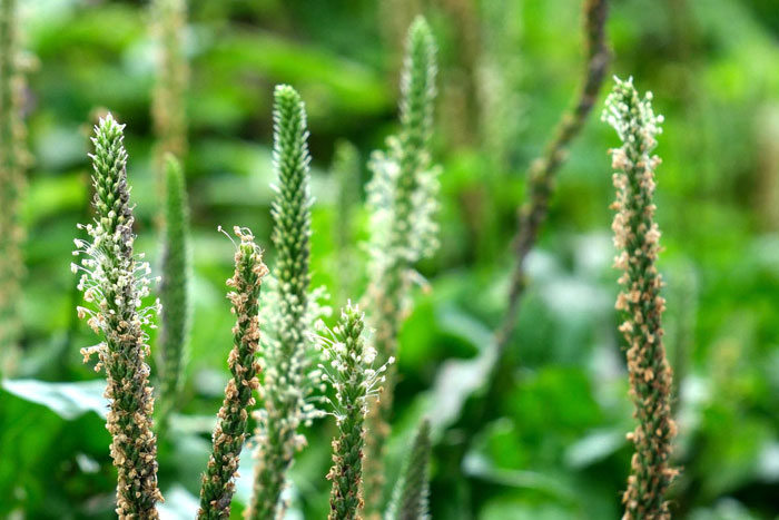 - 中国名「車前草(しゃぜんそう)」・・・人だけでなく、車にも踏まれ、そのわだちにも好んで生えることから、別名及び生薬名「車前草」と呼ばれている。