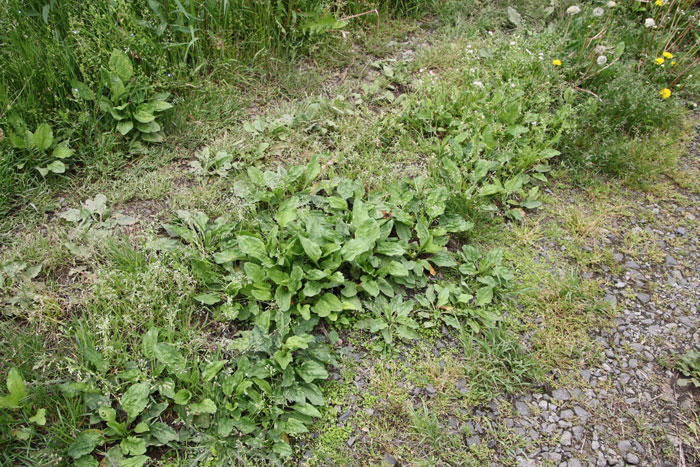- 葉・・・葉は地面にへばりつくように広げ、全体がゆるやかに波打つ。数本の丈夫な葉脈があり、踏みにじられても容易にちぎれない。