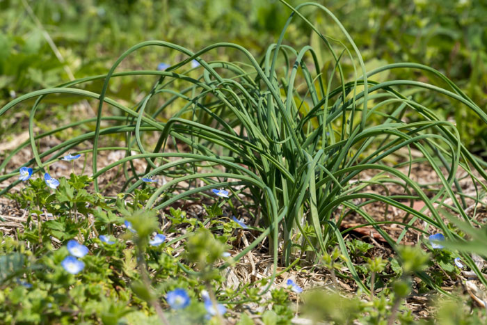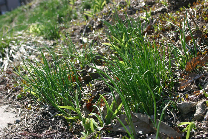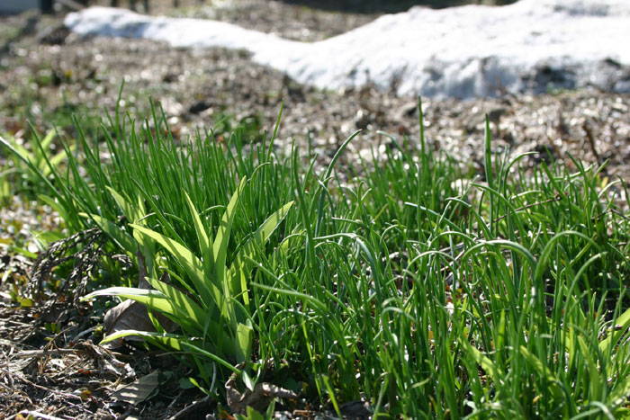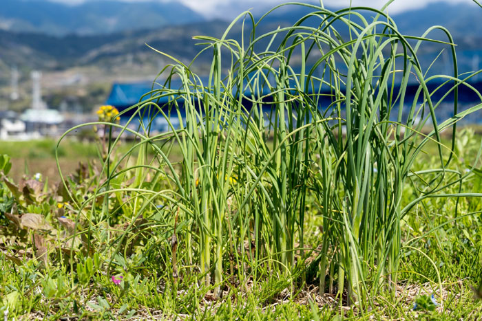 - よく似たアサツキ・・・真直ぐに伸びる。葉の断面は筒状で丸い。秋田では、ノビルもアサツキの若芽も「ひろっこ」と呼ばれている。
