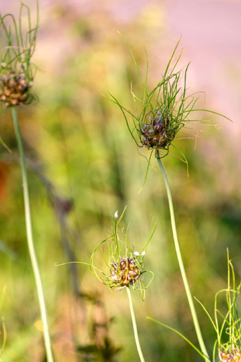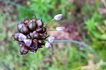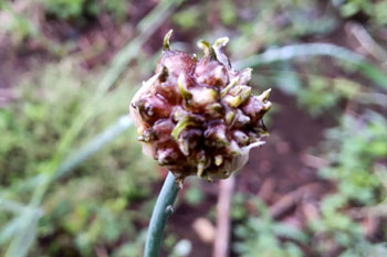 - ムカゴ・・・花茎の先端にできる赤褐色の小さな粒をムカゴと呼ぶ。直径5mmほどの粒が固まってつく。鱗茎と同様、食用になる。