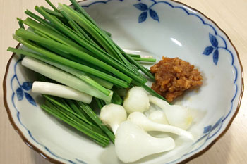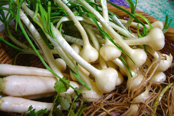 - 食用・・・開花前の若芽を掘り取る。鱗茎は洗ってヒゲ根と薄い皮を取り除く。生で味噌をつけるだけでも美味しい。葉つきのまま天ぷら。茹でて、酢味噌和え、おひたし、マヨネーズ和えなどに。