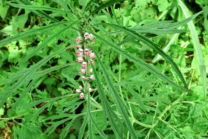 道端や荒れ地、海岸などに生え、高さは1mほどになる。葉が深く裂ける独特の形をしている。晴天が幾日も続くと、葉がだらりと垂れ下がることが多い。漢方では、産後の体力低下や月経不順などの改善を目標とした処方に使われたことから、生薬名「ヤクモソウ(益母草)」と呼ぶ。本州から沖縄に分布。