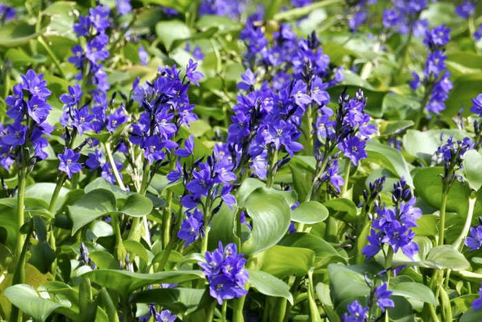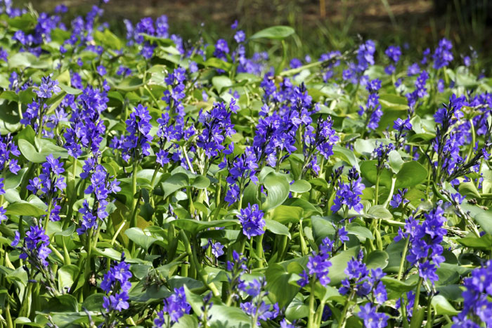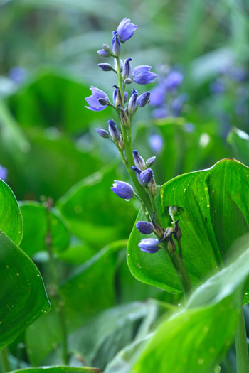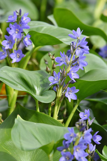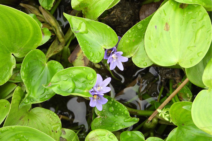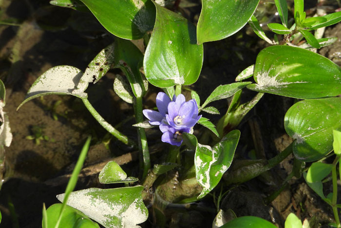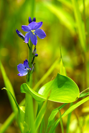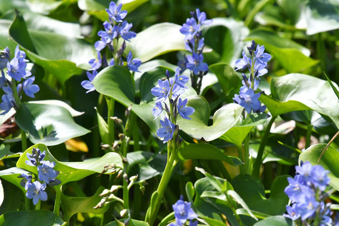 - 花・・・水中から茎葉を伸ばして開花する。花は一日花で、青紫色の径3cmほどの6弁花を多数咲かせる。