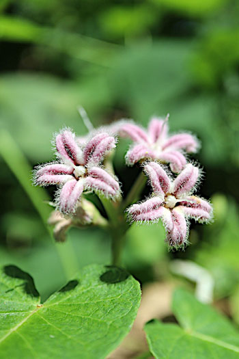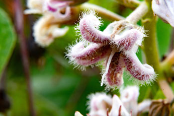 - 花アップ・・・花の先は5つに分かれて反り返る。まるでヒトデのような形で、厚みがあり毛が密集している。