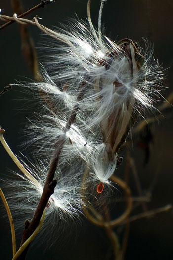- 種子・・・扁平な楕円形で翼があり、先端に絹糸状の長い毛が多数ある。この実をワタノミとも呼んでいる。