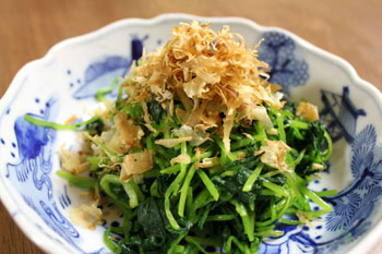 - 料理・・・生のままを貝柱や小エビとかき揚げ、茶わん蒸しの青み、刻んで薬味に。さっと茹でて、おひたし、和え物、椀だね、まぜご飯の青み、卵とじなど。