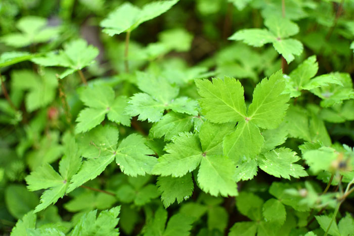 - 葉・・・3出複葉で互生。小葉は卵形で尖り、重鋸歯がある