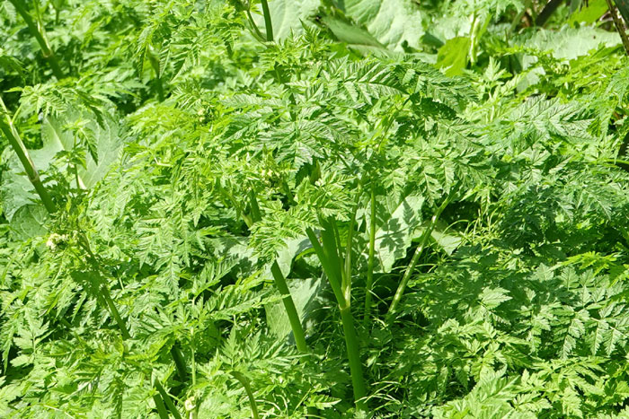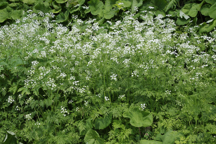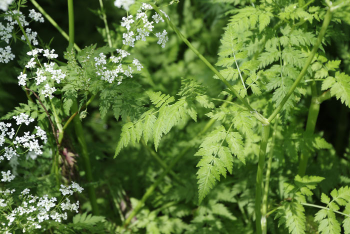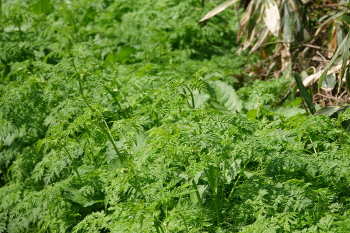 - 食用・・・若葉を摘んで食べると、ニンジンの葉を思わせる爽やかな風味を楽しめる。群落になっているので見つけやすく、その場だけで十分な収穫を得ることができる。若葉、もしくは20cmくらいまで伸びた茎の上葉を摘む。天ぷら、おひたし、炒め物、洋風スープの彩りや香りづけに。