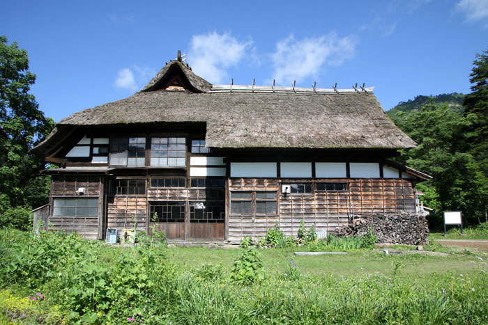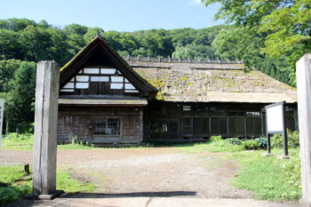 - 上写真:旧長谷部家住宅(県重要文化財)/右下:八十里越・古道入口(浅草岳入叶津登山口)