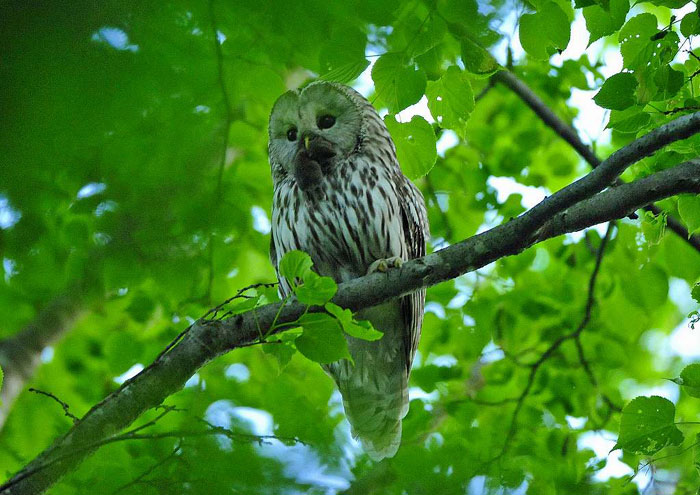 - フクロウの主食はネズミ・・・フクロウは音を立てずに飛ぶことができるので、ネズミを簡単に捕獲できる。音を立てずに飛ぶことができるフクロウの風切羽の構造は、新幹線の騒音対策として車輛の設計にも応用された。写真提供:髙久 健氏 ブログ「ケンさん探鳥記」