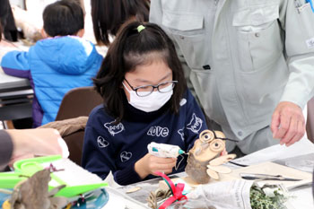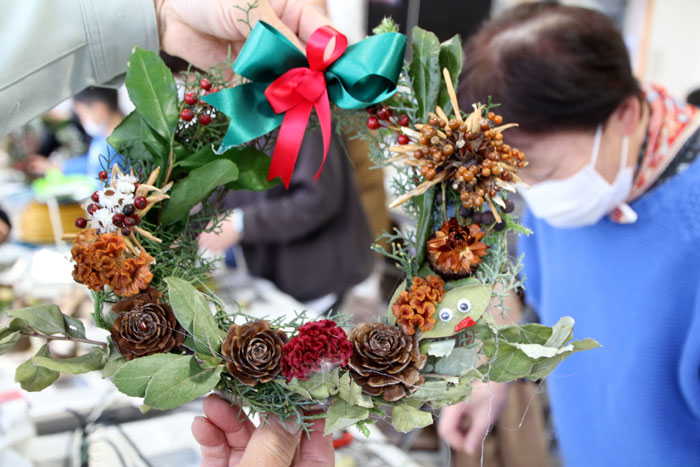 2021年11月28日(日)、「親子でクリスマスリースづくり体験」が秋田市浜田の大森山動物園ミルヴェ館を会場に開催された。大森山動物園では、11月28日で今年の通常営業を終えることから、「2021さよなら感謝祭」の一環で開催された。今回は、親子10組が参加して行われた。豊富な森の素材を使って、子どもたちは動物(フクロウ)のクラフトづくり、大人たちはクリスマスリースづくりを楽しんだ。