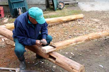 | ▲窯の前に土留め用として鳥居タイプの柱を建てる。 | |||||||
