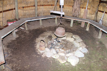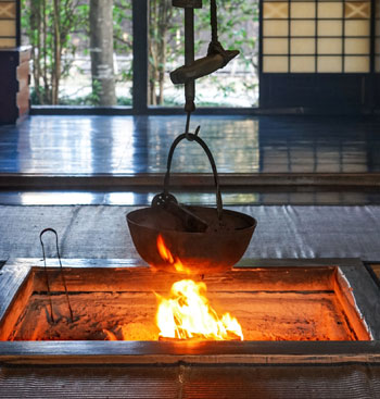 ヤマハハは囲炉裏の横座にドカッと足を踏ん張って座り、火にあたりながら、「飯を炊いて食わせろ」と言った。娘はその言葉に従って膳の支度をし、ヤマハハに食べさせた。ヤマハハが夢中で食べている隙に、家から逃げ出した。