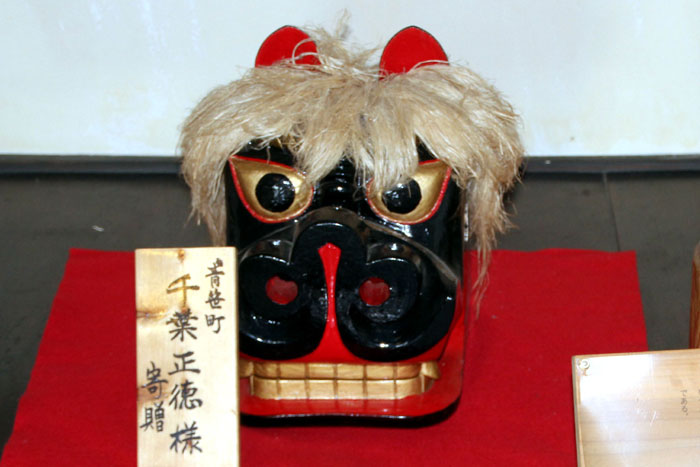 「ゴンゲサマ(権現様)」というのは、神楽舞の組ごとに一つずつ備わっている木彫りの像のことで、獅子頭とよく似ているが、少し異なっている。この像は、甚だしい御利益がある・・・ゴンゲサマの霊験は、特に「火伏(火災除け)」にある・・・また、子供で頭の病気を患っている者などは、よくゴンゲサマにお願いをして、その病の頭を噛んでもらうことがある。