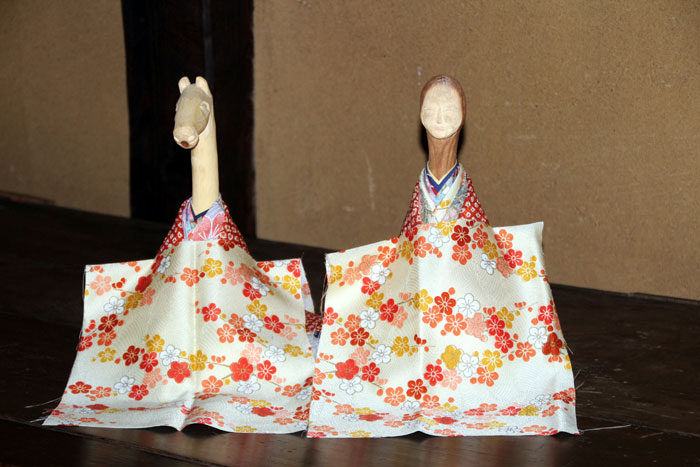 「オシラサマ」というのは、この時から生まれた神様である。馬を吊り下げた桑の枝で、その神様の像を作る。