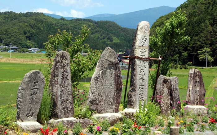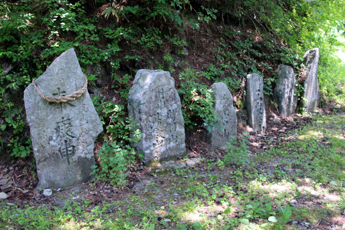 第98話、道の傍らに、山の神、田の神、塞の神の名を彫った石を立てるのは、よくあることである。また、早池峰山や六角牛山の名を刻んだ石塔は、遠野郷にもあるが、それよりも山を越えた沿岸地方に特に多く見られる。