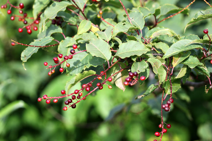 - 果実・・・夏に赤くなった後、黒く熟す。長さは6~7mm。黒く熟した実は、結構美味しい。果実酒は、梅酒のように健康ドリンクとして昔から利用されている。