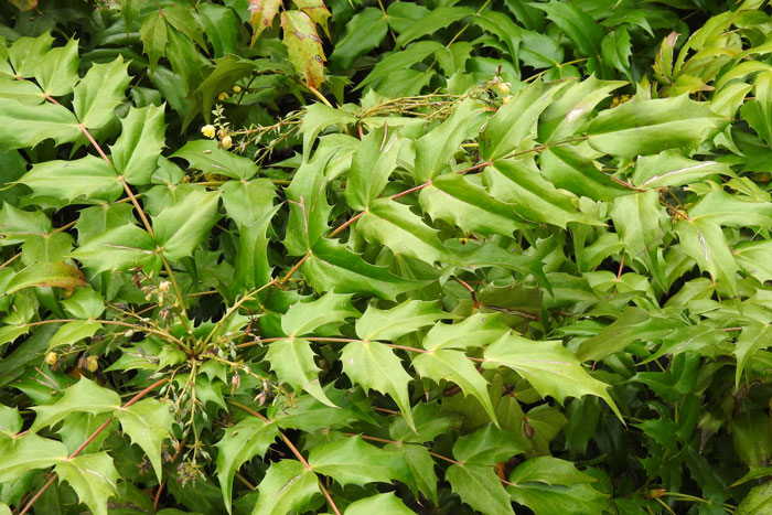 - 葉っぱがヒイラギに似ているヒイラギナンテン(柊南天、メギ科)