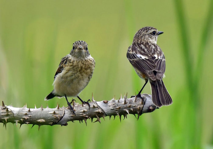 - 托卵を巡る攻防 カッコウVSノビタキ・・・カッコウは、ノビタキやオオヨシキリ、モズなどの巣に自分の卵を産み込み、育てさせる托卵という習性がある。カッコウの♀は、ノビタキの巣の様子をずっと観察して、宿主の産卵が始まると、すばやく自分の卵を1つだけ産み込む。その際、カッコウが宿主であるノビタキに見つかってしまうと、激しく攻撃される。