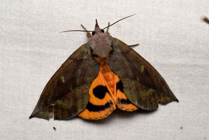 - オオトモエ・・・大型種で、夜、樹液に飛来する。不明瞭な「巴」紋と白い環形の帯が特徴。4~9月に現れる。食草はサルトリイバラ。北海道から沖縄まで全国に分布。