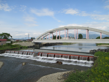 - この橋の向こうに中仙中学校があります。手入れを終えたサクラ並木、心なしか元気になったような?