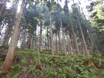 - ハナモモ談義の後で、阿部さんの所有林を案内してもらいました。御年86歳とは思えない軽い足取りで山道を上がって行きます。山の話しをするときは本当に嬉しそうで、合間に入る文字通りの「わっはっは」という笑い声は人の良さが伝わって来ます。