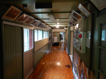 - 玄関正面と内部はまさに昭和の香り、レトロプンプンの木造校舎そのものです。私も昭和世代なので、同じく木造の通った中学校を思い出します。