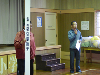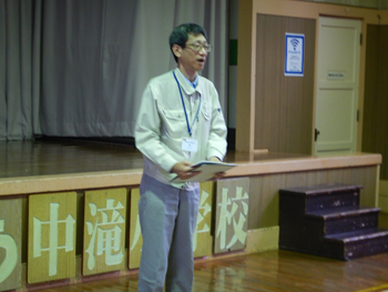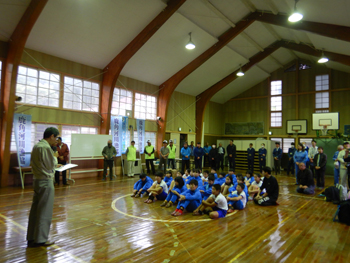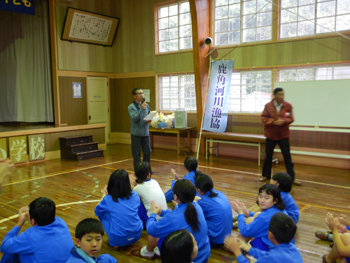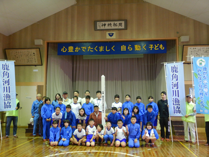 - 事務局の司会で会が始まり、最初に宮野組合長が、鹿角漁協では河川をキレイにしたり、放流事業を行って、関東からも大勢の釣り客が来るようになった。何故そんなに釣り人が来るのかを水産庁の人が調査に来たくらいだ。これもキレイな水を生み出している森林の整備を行っている国や県のお陰であると、優しく丁寧に子供達に語りかけました。宮野さんは鹿角森林組合長もなさっており私は随分お世話になりました。