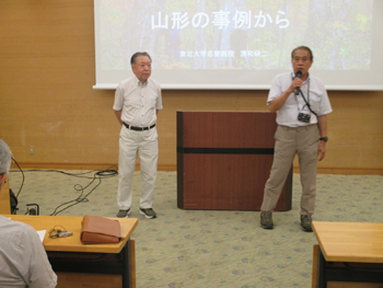 - 休憩を挟んで、後半は東北森林管理局の大日向さんから国有林における森林ボランティア活動などの説明がありました。なお、情報提供の4団体の資料については、HPに掲載します。