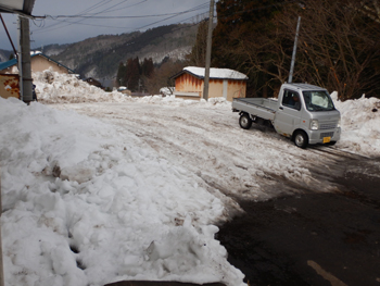 - センター近辺の駐車場は関係者で満杯になっていて、空いているスペースは気温が上がったためざらめ雪になって車では入っていけませんでしたので、少し離れた臨時駐車場に駐めました。