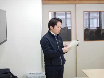 - 上の写真は、佐藤先生が始まりの説明をしているところです。 土木・建築家の生徒さんは20名ですが、女性が9人もいて驚きました。