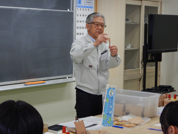 - 私(福井)はサポートセンターに来て6年目になりますが、出前講座は今年が初めての取材でした。税事業の新たな一面として、これからの県政をになう若者に森林・林業・木材産業を工夫を凝らし、分かり易く説明し、木育体験で興味を持って貰う手法は大変参考になりました。