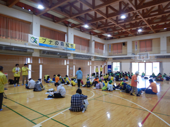 - 会場の白神体験センターには多くの人が集まり開会式が始まりました。NTT東北やイオン財団などの協力団体の方々も多数参加しています。