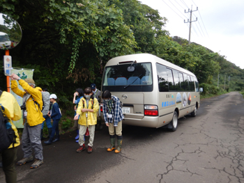 - 3台のバスに分乗し10分ほどで現地に着きます。現地には介護所やトイレも用意されて安全対策も万全です。
