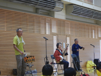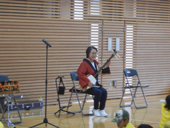 - バスで交流センターに戻り、名札と交換で貰った弁当を食べながら、今年は津軽三味線の演奏を聴きました。ちなみに弁当のカラやゴミは自宅に持ち帰りとなっています。