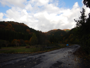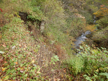 - 林道の崩壊個所は春からそのままです。こちら側では車の走行は無理です。