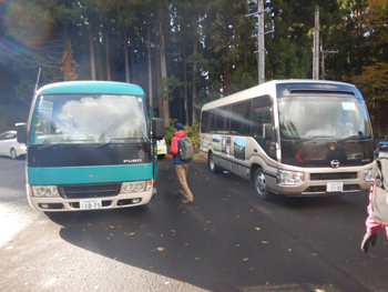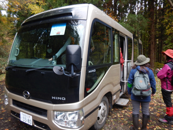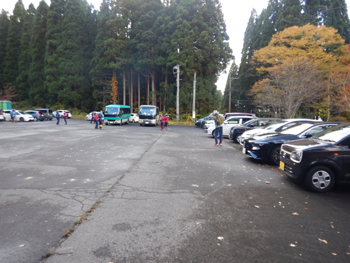 - 二ツ森方面は、山の上の方は紅葉が始まっていましたが、まだ空気に暖かさが残っています。駐車場には多数の車がいました、勘違いは私だけのようです。今回はバス2台で移動です。