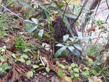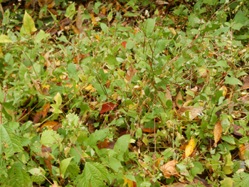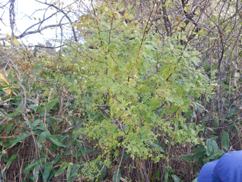 - 秋元さんは勉強家で詳しく説明してくれます。早速サンショウがありました、下を見るとタヌキの溜糞があちこちあります。