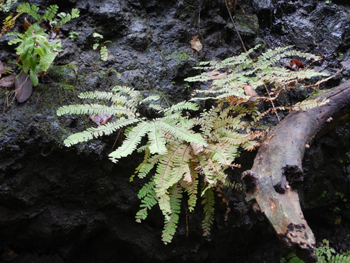 - 岩場にクジャクシダが生えています。なるべく離れないように歩きます。