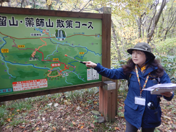 - カエデとモミジの違いや言われの説明を聞いていると約2時間で留山入口に着きました。