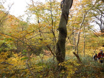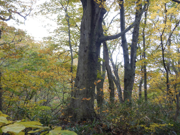 - 林内に入るとブナの大木が迎えてくれます。