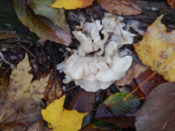- 木道の木には一見マイタケのような白いキノコがあちこちに生えていました。