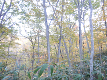 - それにしても殆どミズナラが見えなくなりました。昨年は枯木にムキタケが付いているのを見ましたが、今回は既に倒れた腐った樹があちこちにありました。これではドングリが成るはずもなくクマが街に出てくる原因の一つです。
