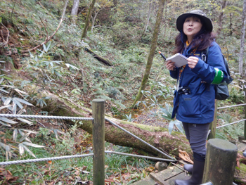 - 留山とは昔山を伐採したときに水害や水不足が多発したため、禁伐して水源を護ってきた。ここに2002年に遊歩道を付ける時は地元の反対を受けたが、専門のガイドを付けることを条件に山を解放してもらった、とのことです。