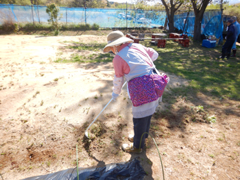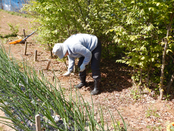 - 一方、苗圃の中でもそれぞれが道具を使いながら草を抜いています。個々が自分の役割を理解しながら自分に合った作業をしているのが素晴らしいです!